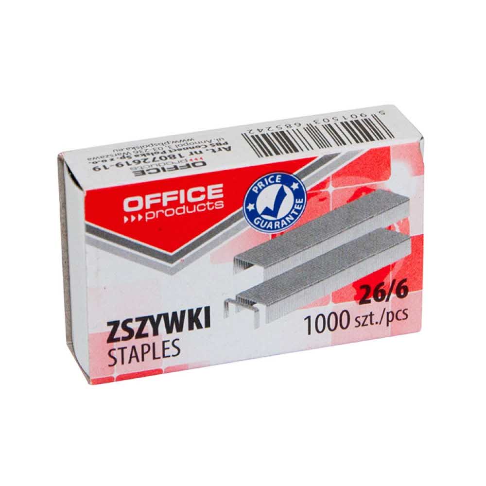zszywki rozmiar: 26/6 wyprodukowane ze stali wysokiej jakości w procesie produkcyjnym przycinane są pod kątem tworząc ostre końcówki opakowanie: 1 000 szt.