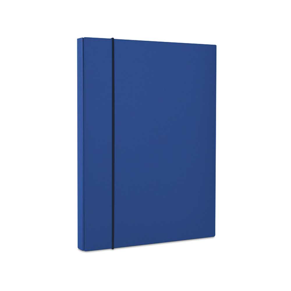 teczka poszerzana wykonana z utwardzanego kartonu (grubość 2mm) pokryta ekologiczną folią PP wewnątrz biała okleina pojemność: ok. 230 kartek o gramaturze 80gsm zamykana, okrągłą gumką wzdłuż teczki dwa, krótkie boki z tworzywa sztucznego w kolorze mlecznym szerokość grzbietu: 40mm format: A4 kolor: granatowy