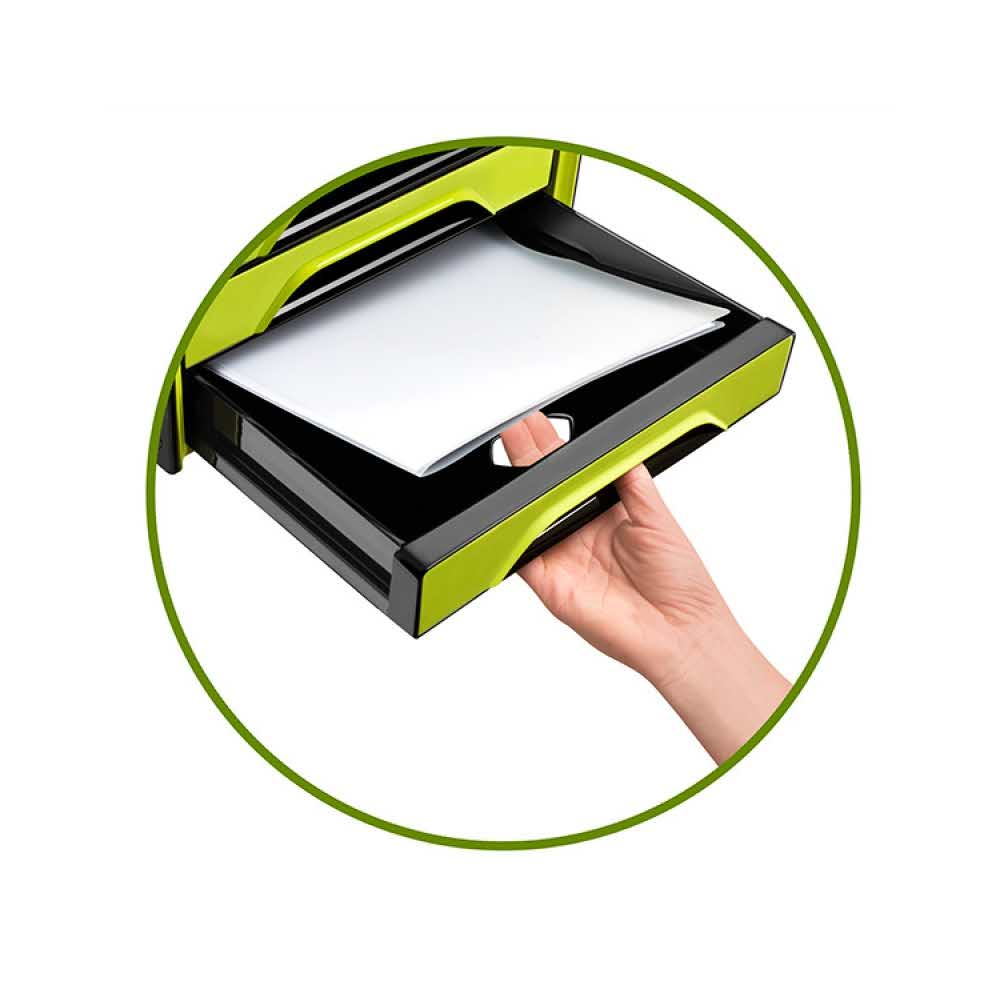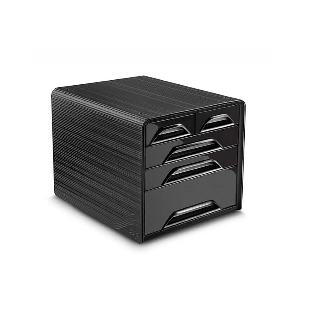 zestaw 5 szufladek wykonanych z wysokiej jakości plastiku w 100% recyklowanego wyposażony w ergonomiczne uchwyty z ogranicznikami na każdej szufladzie zestaw zawiera: 2 małe szufladki o wymiarach 32,2×10,8×3,7cm 2 standardowe szufladki o wymiarach 32,2×24,4x4cm 1 dużą szufladkę o wymiarach 32,2×24,4×8,5cm 6 etykiet opisowych podkładki antypoślizgowe zabezpieczające powierzchnię blatu przed porysowaniem wymiary: 36×28,8x27cm kolor: czarny