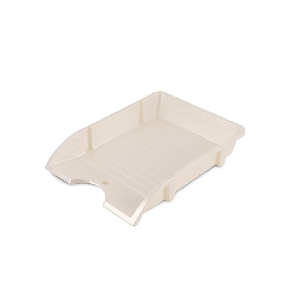 szufladka na biurko z nową oryginalną stylistyką wykonana z niełamliwego i odpornego na odkształcenia polipropylenu powierzchnia karbowana na spodzie szufladki możliwość łączenia szufladek w pionie oraz nałożenia na siebie aby zmniejszyć objętość podczas transportu otwór w podstawie oraz wycięcia po bokach ułatwiające użytkowanie format: A4 wymiary: 250x345x45mm kolor: perłowy