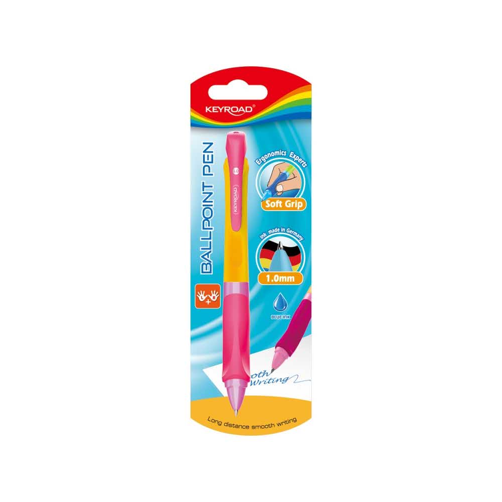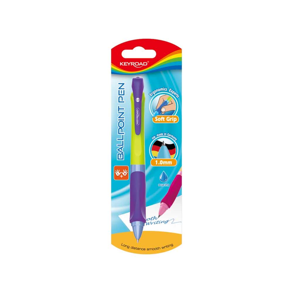 długopis automatyczny rękojeść z antypoślizgowymi żłobieniami w ergonomicznym kształcie dla lewo i praworęcznych kolorowa obudowa, tusz w kolorze niebieskim średnica kulki: 1,0mm kolor: mix kolorów