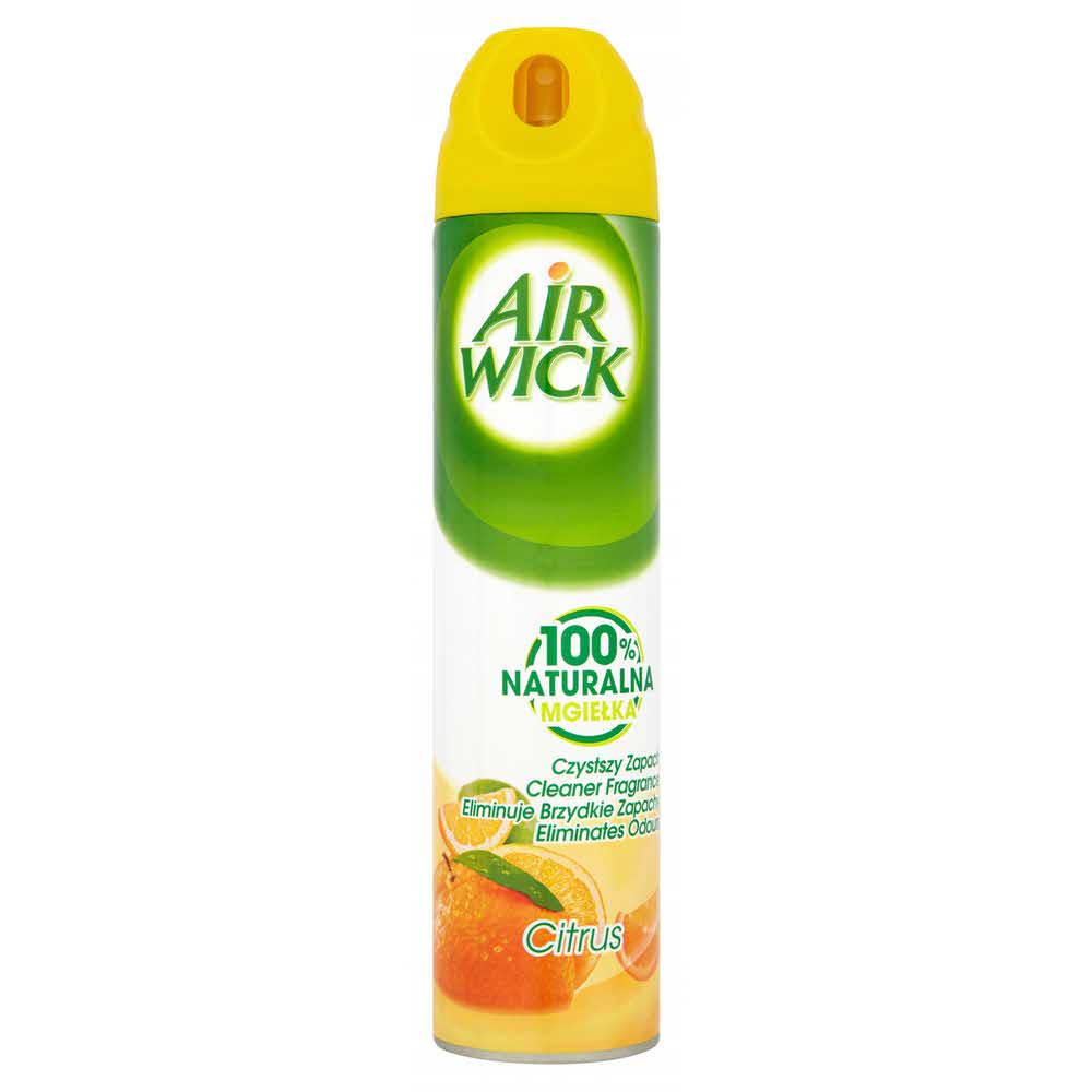 odświeżacz w sprayu rozpyla delikatną, naturalną mgiełkę tradycyjne odświeżacze zawierają butan, który nadaje im ostry, sztuczny zapach odświeżacz Airwick wykorzystuje specjalną formułę na bazie wody, która zapewnia czystość rozpylanej mgiełki pojemność: 240ml zapach: citrus