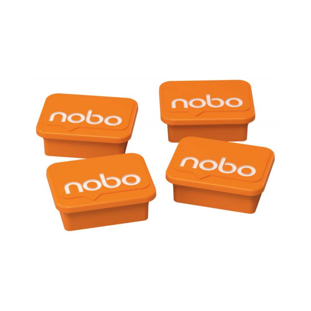 magnesy zaprojektowane pod kątem użycia na magnetycznych tablicach suchościeralnych Nobo utrzymują do 4 kartek rozmiar: 18x22mm kolor: pomarańczowy 4 szt. w j.s.