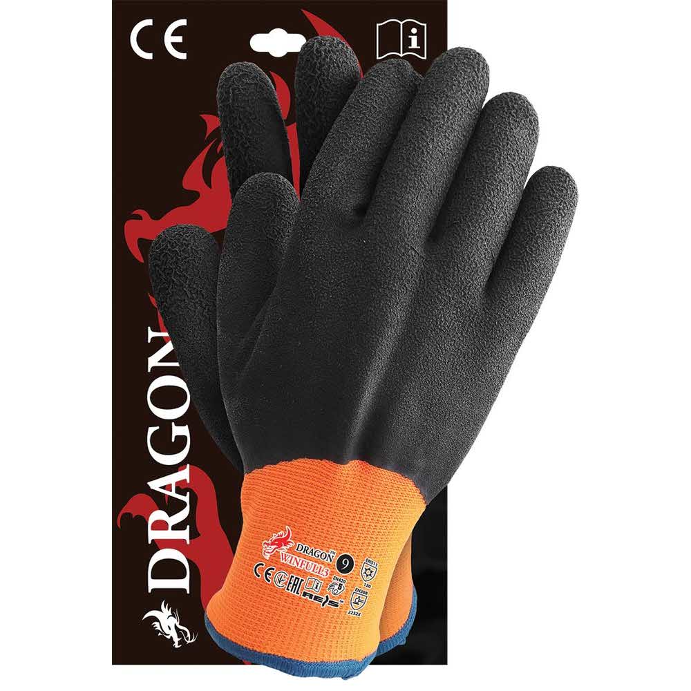 Rękawice ochronne ocieplane, powlekane. – podwójna warstwa materiału: z zewnątrz poliester, od wewnątrz przędza akrylowa, która gwarantuje komfort użytkowania oraz ciepło – powlekane na części chwytnej jak i wierzchniej powłoką spienianego lateksu – powleczenie zapewnia przyczepność, elastyczność oraz wygodę użytkowania – wytrzymałość i wysoka jakość gwarantują zadowolenie użytkowników – idealne do prac w niskiej temperaturze zewnętrznej, stosowane na magazynach, jak również w chłodniach – wykorzystywane w budownictwie oraz przemyśle transportowym – każda para pakowana w osobną torebkę – świetnie się prezentują i są idealne na wszelkiego rodzaju prezentacje – zgodne z normami EN388 (poziomy odporności: 2 3 3 2), EN511 (poziomy odporności: 1 2 0) i EN420