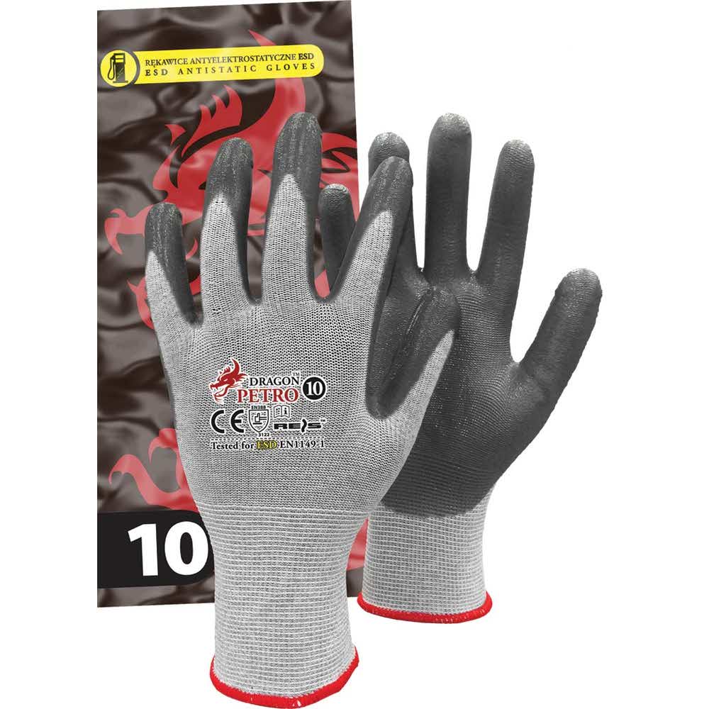 Rękawice antyelektrostatyczne ESD. – wykonane z przędzy nylonowo-karbonowej – powlekane nitrylem – idealne do przemysłu elektronicznego – każda para pakowana w osobną torebkę, dzięki czemu świetnie się prezentują i są idealne na wszelkiego rodzaju prezentacje – zgodne z normami EN388 (poziomy odporności: 4 1 2 2 X), EN420 oraz EN16350