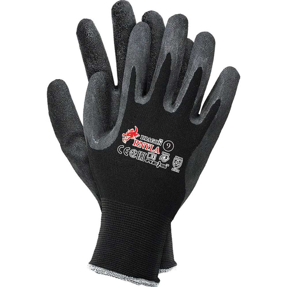 Rękawice ochronne wykonane z nylonu z dodatkowym powleczeniem z latexu. – wykonane z nylonu, ścieg 13 – powlekane latexem o chropowatej strukturze zapewniającej doskonałą chwytność, nie powodując usztywnienia rękawicy – latex wykazuje odporność na detergenty oraz kwasy – zarówno tkanina jak i oblanie odporne na rozdarcie, rozciągliwe i wytrzymałe, mimo iż są cienkie – elastyczne, dzięki czemu świetnie dopasowują się do dłoni – zapewniają doskonałą manualność przy ograniczeniu ślizgania się trzymanego przedmiotu – niepylące – potocznie zwane blue-bird – zgodne z normami EN388 (poziomy odporności: 3 1 3 1 X) i EN420