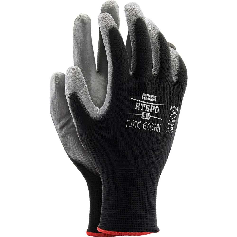 Rękawice ochronne wykonane z poliestru, powlekane poliuretanem. – zakończone ściągaczem – odporne na ścieranie i rozdarcie – zapewniają manualność oraz doskonałe czucie trzymanego przedmiotu – wykazują bardzo dużą elastyczność oraz świetnie dopasowują się do dłoni – idealne do prac, gdzie wymagana jest precyzja – stosowane jako zamiennik dla rękawic RNYPO – zgodne z normą EN388 (przykładowe poziomy odporności: 4 1 2 1) i EN420