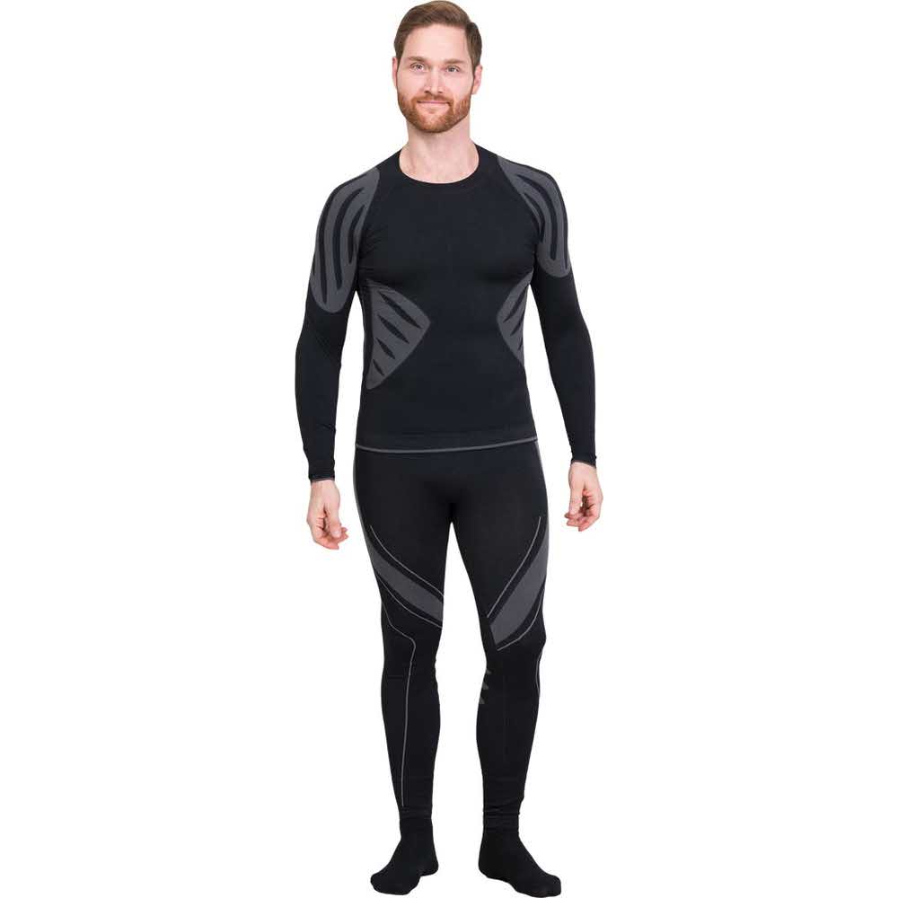 Bielizna termoaktywna WARM. – materiał 65% nylon, 30% poliester, 5% spandex – w zestawie koszulka z długim rękawem oraz spodnie o nowoczesnym designie – zapewnia optymalną temperaturę ciała, komfort noszenia – dokładnie dopasowuje się do kształtu ciała, zapewniając zarówno termoregulację, jak i ochronę mechaniczną, jednocześnie nie krępując ruchów – rękawy oraz nogawki zakończone ściągaczem