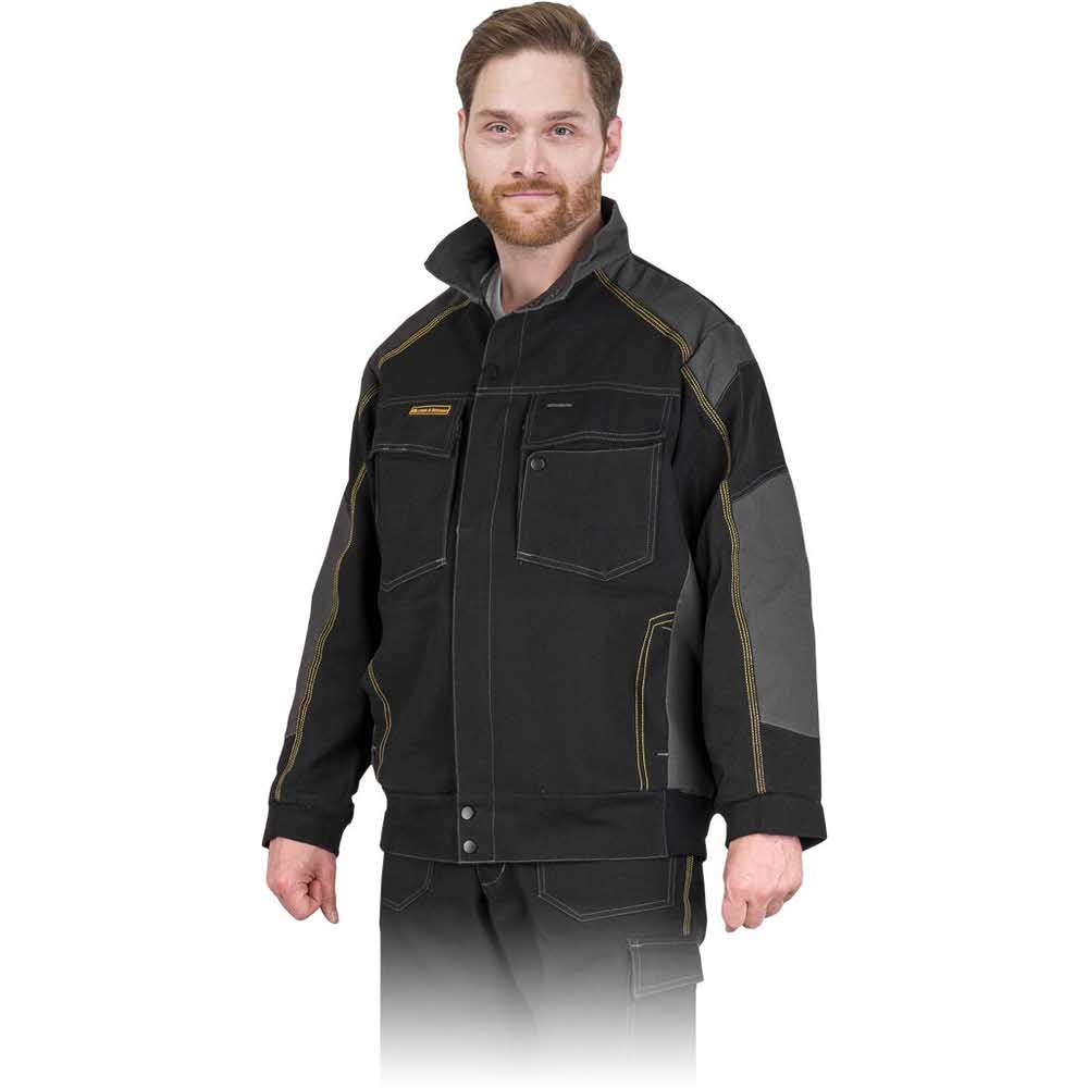 Bluza ochronna. – 100% bawełny typu canvas – gramatura 295 g/m2 – zasuwana z dodatkowym zapięciem na napy – kołnierz w formie stójki zapinany na napy – pięć kieszeni: dwie boczne w dolnej partii oraz dwie duże w górnej części zapinane na rzep z dodatkową ukrytą kieszenią na telefon komórkowy – dolna część oraz rękawy zakończone ściągaczem, dzięki czemu zabezpieczają przed dostaniem się wiatru – elastyczna siatka pod pachami zapewnia wentylację i zwiększa pole manewru rękami – zaprojektowana dla osób dynamicznie poruszających się podczas pracy oraz ceniących sobie wygodę w każdej sytuacji – nowoczesny ergonomiczny fason zwiększa swobodę ruchów i zapewnia maksimum komfortu podczas najcięższych prac – idealnie pasuje do spodni LH-DYNAMITE-T i ogrodniczek LH-DYNAMITE-B