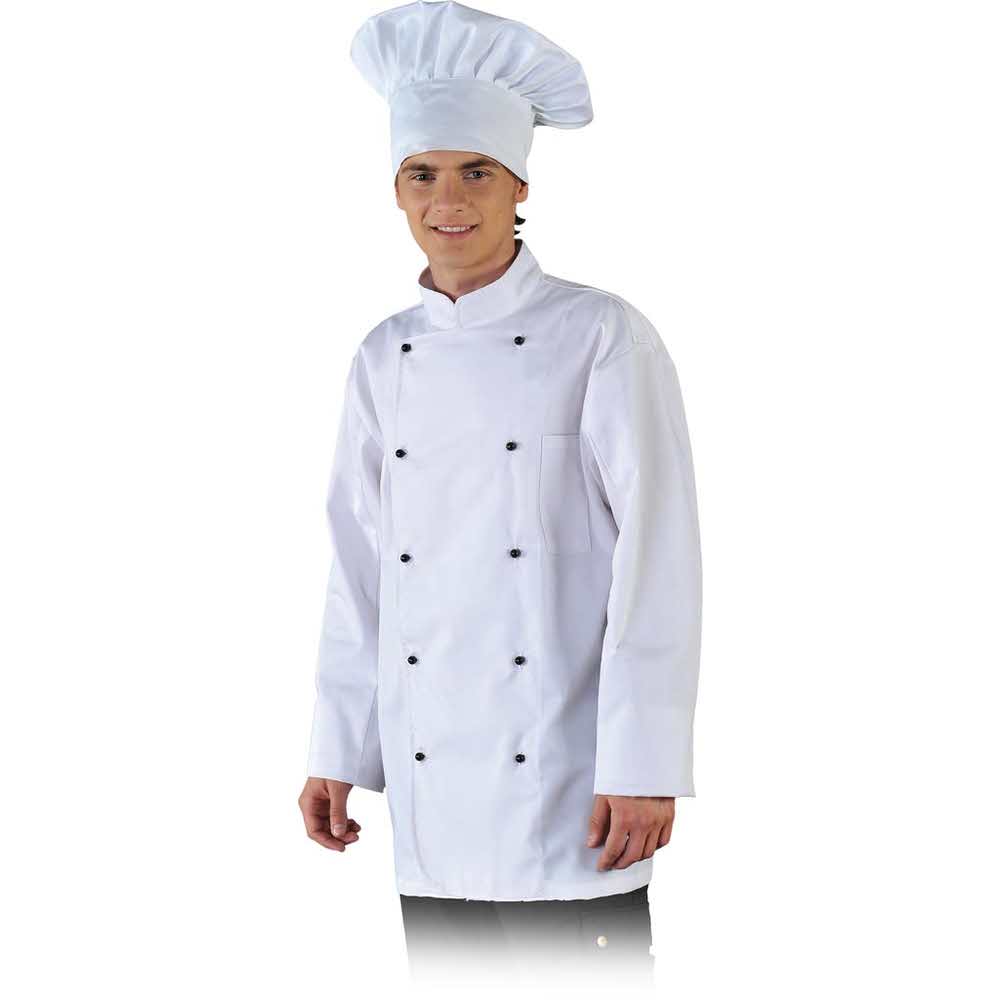 Bluza kucharska z linii Chef’s Kitchen. – 65% poliestru, 35 % bawełny – gramatura 245 g/m2 – odpowiednia do prania przemysłowego (maksymalna temperatura 95°C) – parametry tkaniny zwiększają skuteczność usuwania plam z odzieży – w górnej części wykończona stójką – na przodzie dwa rzędy guzików LH-BUTTON, które można dowolnie wymieniać – dostępne w kilku kolorach – z lewej strony w górnej części podłużna kieszeń – rękawy zakończone niewielkimi rozcięciami dzięki czemu po wywinięciu tworzą elegancki mankiet