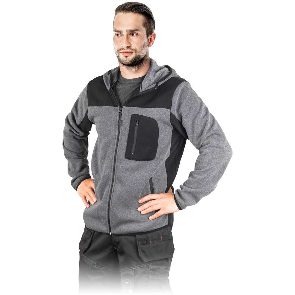 Bluza ochronna z kapturem. – 100% poliester – gramatura 260 g/m2 – zapinana na suwak – trzy zasuwane kieszenie po zewnętrznej stronie: dwie po bokach i jedna na górze – rękawy, kaptur oraz dół bluzy wykończone elastyczną lamówką, która nie tylko delikatnie ściąga, ale również zdobi