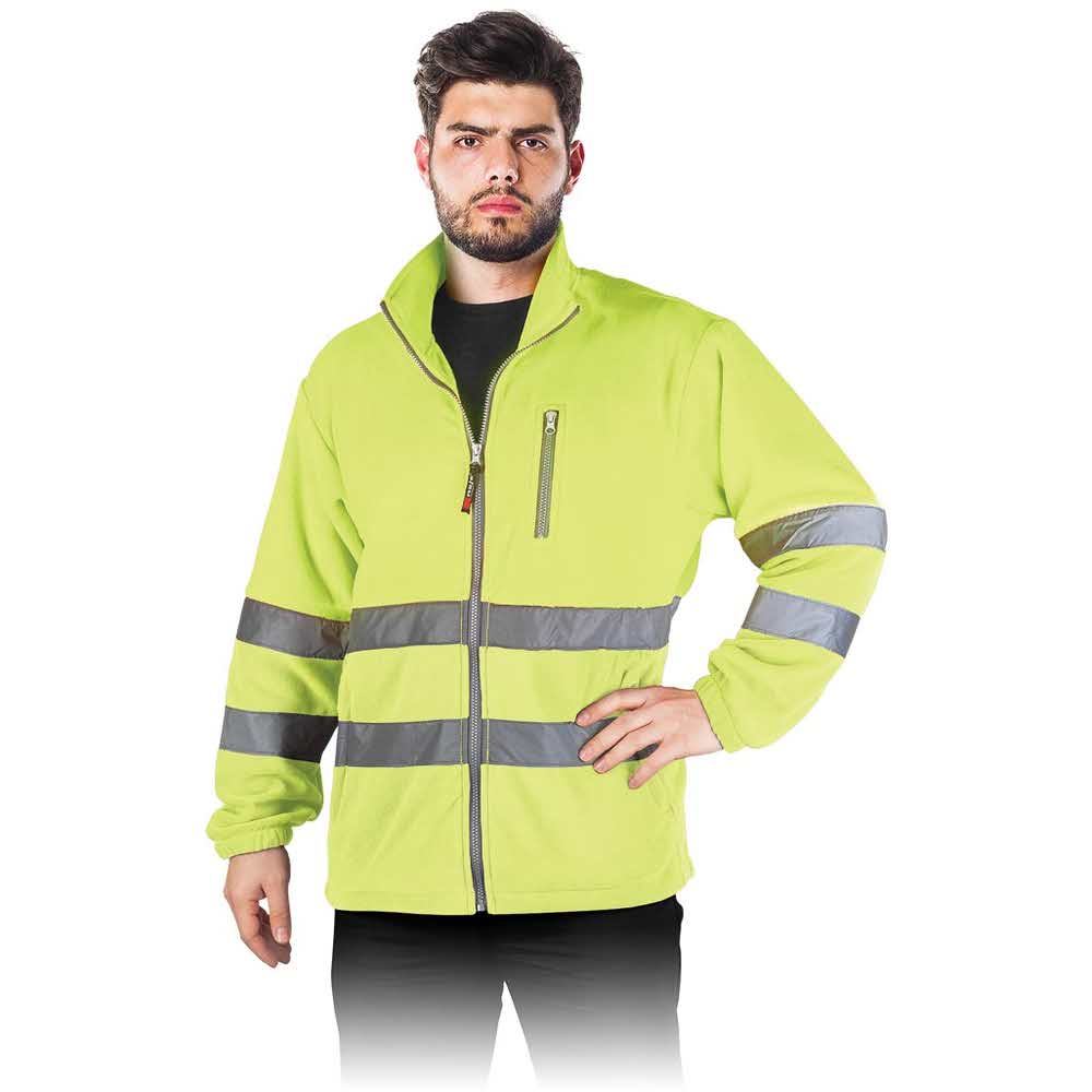 Bluza polarowa z pasami odblaskowymi. – 100% poliester – gramatura 290 g/m2 – pasy odblaskowe, po dwa na rękawach i na bluzie zwiększające widoczność – zapinana na suwak – kołnierz w formie stójki – dwie kieszenie zasuwane na zakryty polarem suwak – dodatkowa zasuwana kieszeń na klatce piersiowej – rękawy wykończone elastyczną lamówką – doskonała do prac, gdzie wymagana jest zarówno ochrona przed zimnem, jak i zwiększona widoczność