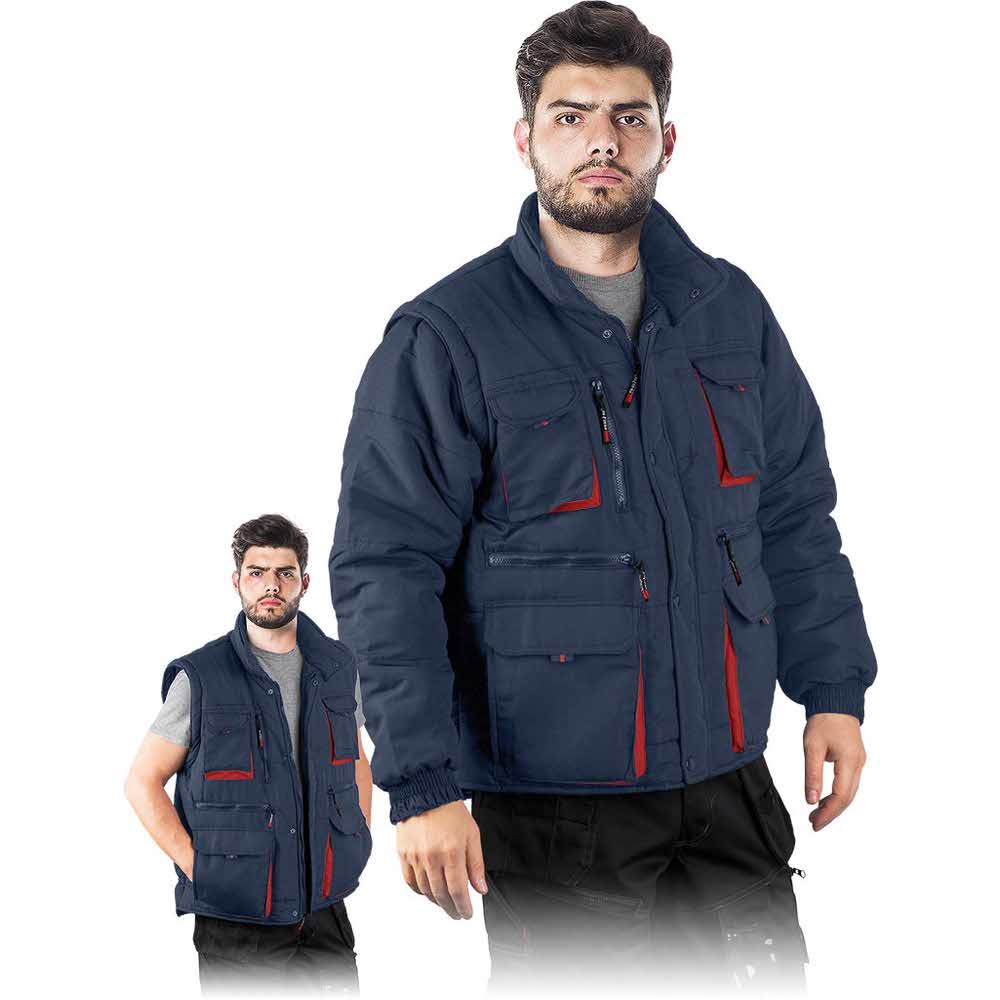 Kurtka zimowa z odpinanymi rękawami. – powłoka 100% poliester – wyściółka 100% poliester – podszewka 100% poliester – zapinana na suwak z dodatkowym zapięciem na napy – ośmiokieszeniowa, w tym cztery kieszenie na rzep i dwie na suwak – kieszeń od wewnątrz oraz dodatkowe kieszonki na zewnątrz na długopis – odpinane rękawy zwiększają funkcjonalność kurtki – ściągacz w rękawach – kolorowe wstawki przy kieszeniach – przedłużany tył kurtki chroni przed wiatrem i dodatkowo ogrzewa plecy – delikatne marszczenia po bokach na dole nad przedłużeniem zabezpieczają przed podwijaniem się materiału i dopasowują kurtkę do sylwetki użytkownika