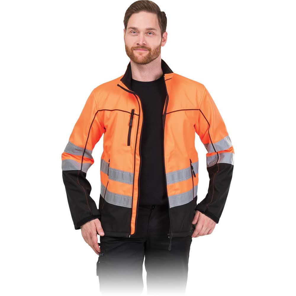 Kurtka ochronna z materiału SOFTSHELL. – powłoka 100% poliester – zapinana na suwak z dodatkową zakładką pod suwakiem chroniącą przed wiatrem – kołnierz w formie stójki – pasy odblaskowe na kurtce i rękawach gwarantują lepszą widoczność – dwie kieszenie po zewnętrznej stronie oraz jedna na klatce piersiowej zapinane na suwak – rękawy zakończone na rzep, umożliwiające regulację ich szerokości i doskonałą ochronę przed deszczem – idealne dla drogowców oraz służb porządkowych – spełnia wymogi normy EN20471 (klasa 2)