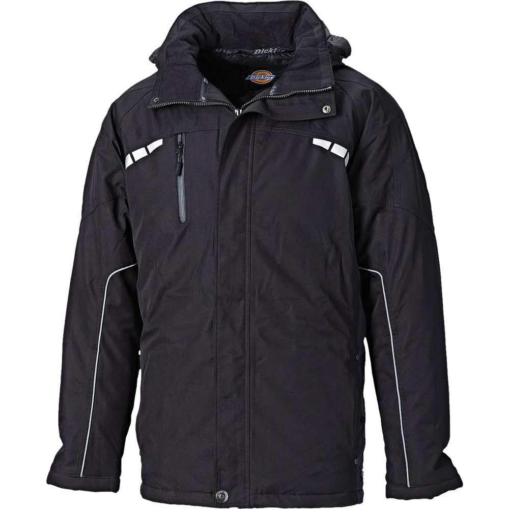 Kurtka Dickies Atherton. – 100% poliester twill z powleczeniem TPU, wzmocnienia z poliestru 150D – mocna i wytrzymała, kurtka ocieplana – nieprzemakalność: 8000 mm, oddychalność: 5000 mvp – kieszeń na klatce piersiowej z wodoodpornym suwakiem – dodatkowa kieszeń wewnętrzna – regulowana w pasie – odblaskowe elementy zapewniają lepszą widoczność