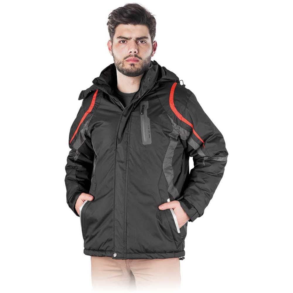 Kurtka ocieplana o nowoczesnym fasonie. – powłoka 100% poliester – wyściółka 100% poliester – podszewka 100% poliester – zapinana na suwak z dodatkowym zapięciem na rzepy oraz napy – odsuwany kaptur ściągany na troczki z dodatkowym zapięciem na rzep dla lepszej ochrony głowy przed chłodem – dwie duże dolne kieszenie oraz jedna na klatce piersiowej zapinane na suwak – jedna kieszeń wewnętrzna na dokumenty – rękawy ze ściągaczami i dodatkowym zapięciem na rzep – od wewnątrz na wysokości pasa pasek zakończony gumką i zapinany na napy, stanowi dodatkowe zabezpieczenie przed wiatrem – odblaskowe elementy zapewniają lepszą widoczność – doskonała zarówno do pracy, jak i do codziennego użytku