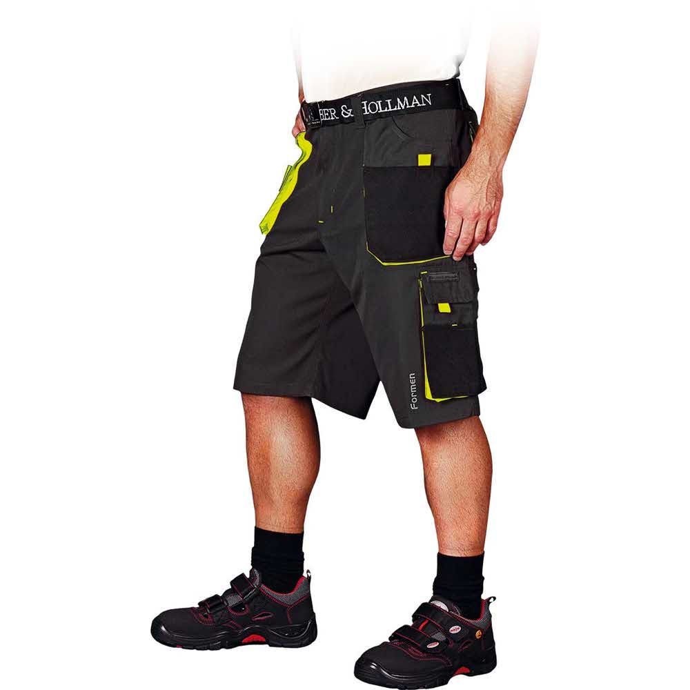 Spodnie ochronne do pasa FORMEN z krótkimi nogawkami. – 65% poliester, 35% bawełna – gramatura 270 g/m2 – dwie kieszenie z tyłu na rzepy oraz dwie boczne podwójne, w tym jedna z kieszonką na telefon – jedna kieszeń na nogawce na rzepy z dodatkowymi kieszonkami na akcesoria oraz jedna boczna podłużna – duża liczba kieszeni zwiększa funkcjonalność spodni – końcówka do przypięcia kluczy – pętelki umożliwiające doczepienie dodatkowych akcesoriów – gumka w pasie w tylnej partii zwiększa swobodę ruchów oraz umożliwia lepsze dopasowanie – na kieszeniach dodatkowe wzmocnienie co zwiększa wytrzymałość spodni na przetarcia – staranne wykonanie oraz zwiększona wytrzymałość zapewniają wysoki komfort użytkowania – testowane na zawartość szkodliwych dla zdrowia substancji zgodnie ze standardami OEKO-TEX® Standard 100