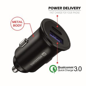 Ładowarka samochodowa SWISSTEN 30W 2 portowy USB C USB A Iphone 12