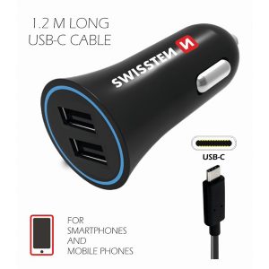 Ładowarka samochodowa SWISSTEN 12W 2 portowy USB A kabel USB C