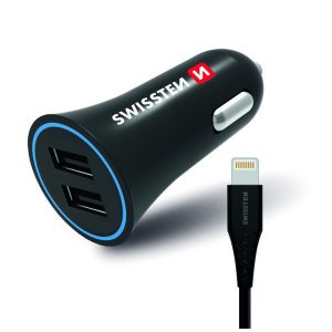 Ładowarka samochodowa SWISSTEN 12W 2 portowy USB A kabel Lighting Mfi