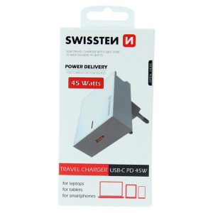Zasilacz sieciowy adapter SWISSTEN 45W 1 port USB C podstawka stojak na telefon