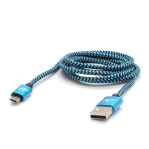 USB kabel 2.0 USB A samec 1m 480 Mb s 5V 2A niebieski Logo box oplot nylonowy aluminiowa osłona złącza