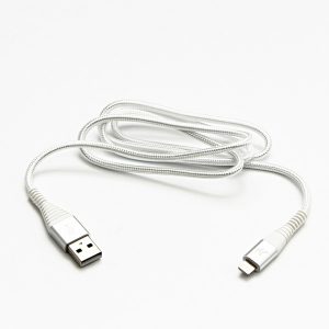 USB kabel 2.0 USB A samec Apple Lightning M 1m MFi certifikat 5V 24A biały Logo box oplot nylonowy aluminiowa osłona