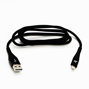 USB kabel 2.0 USB A samec Apple Lightning M 1m MFi certifikat 5V 24A czarny Logo box oplot nylonowy aluminiowa osłona
