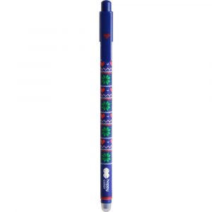 Wymazywalny długopis żelowy z kolekcji MODI w kolorowej obudowie z motywami zimowymi. Dzięki unikalnej formule tuszu napisany tekst można łatwo wymazać. Gumka do wycierania znajduje się na końcu obudowy. Atrakcyjne, intensywne kolory i motywy sweterkowe na obudowie. Grubość linii pisania: 0.5 mm. Kolor wkładu niebieski (crystal blue). Na wymienne wkłady Standard A. 4 sztuki.